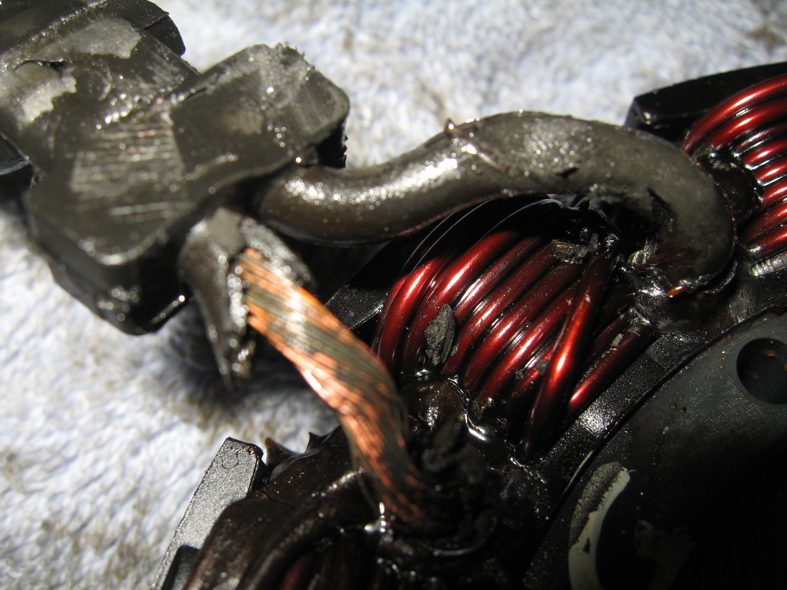 Stator replacement on 1999 FLSTF. The Stator output was shorted to frame with just over 71000 miles on the bike. The battery was not being charged no matter the engine RPM. With a new stator installed the charge voltage varies from 13V to 14.25 V with RPM